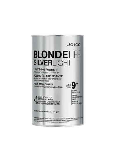 Help counteract brassiness while processing, build bonds, and lift hair up to 9+ levels using NEW Blonde Life Silverlight. With JOICO’s fast-acting, charcoal-infused powder lightener, it’s easy to keep you and your clients’ blonde hair, cool.